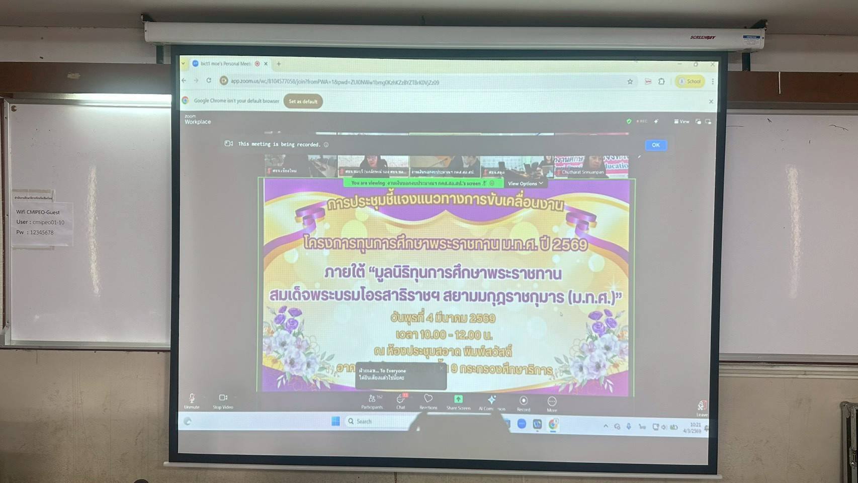 วันที่ 4 มีนาคม 2569 นายกิตติพงษ์ โปร่งเจริญ ผู้อำนวยการสำนักงานเขตพื้นที่การศึกษาประถมศึกษาเชียงใหม่ เขต 5 มอบหมายให้ นางสาวอรัญญา สารีโพธิ์ รองผู้อำนวยการสำนักงานเขตพื้นที่การศึกษาประถมศึกษาเชียงใหม่ เขต 5 เข้าร่วมการประชุมชี้แจงแนวทางการขับเคลื่อนงานโครงการทุนการศึกษาพระราชทาน ม.ท.ศ. ปี 2569 ภายใต้มูลนิธิทุนการศึกษาพระราชทานสมเด็จพระบรมโอรสาธิราชฯ สยามมกุฎราชมาร (ม.ท.ศ.) เพื่อรับทราบแนวทางการขับเคลื่อนงานโครงการทุนการศึกษาพระราชทาน ม.ท.ศ. ตามคู่มือและแผนปฏิบัติการ พร้อมทั้งสร้างความเข้าใจแก่คณะกรรมการคัดเลือก คัดสรร ผู้เข้ารับการคัดเลือกพระราชทานทุน ณ ห้องประชุมศูนย์ปฏิบัติการเชียงใหม่ (POC) ชั้น 3 ศาลากลางจังหวัดเชียงใหม่