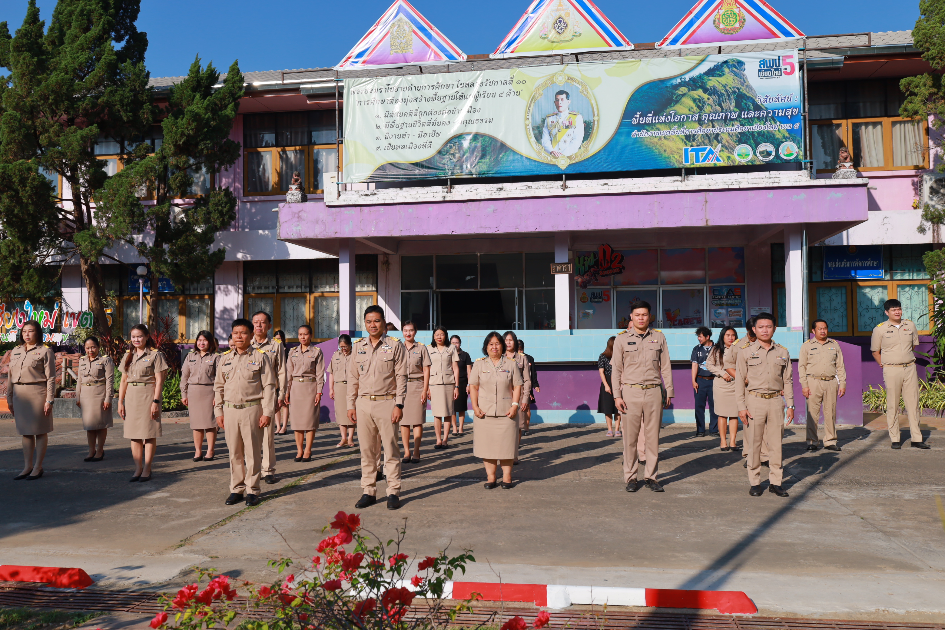 วันที่ 2 มีนาคม 2569 สำนักงานเขตพื้นที่การศึกษาประถมศึกษาเชียงใหม่ เขต 5 นำโดย นายกิตติพงษ์ โปร่งเจริญ ผู้อำนวยการสำนักงานเขตพื้นที่การศึกษาประถมศึกษาเชียงใหม่ เขต 5 นำบุคลากรในสังกัดสำนักงานเขต ฯ ดำเนินกิจกรรมเคารพธงชาติ ประจำเดือน มีนาคม 2569 พร้อมทั้งสวดมนต์ไหว้พระ และร่วมยืนถวายความอาลัยแด่สมเด็จพระนางเจ้าสิริกิติ์ พระบรมราชินีนาถ พระบนมราชชนนีพันปีหลวง เป็นเวลา 93 วินาที จากนั้นได้พบปะพูดคุย และมอบนโยบายการปฏิบัติงานให้แก่บุคลากรในสังกัด ณ บริเวณหน้าเสาธง สพป.เชียงใหม่ เขต 5