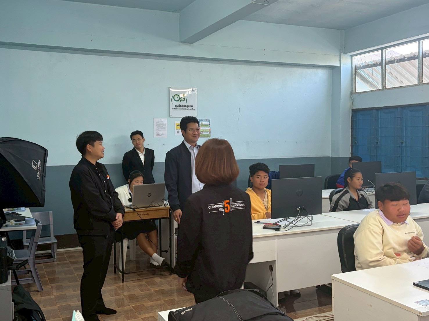 วันที่ 6 กุมภาพันธ์ 2569 นายกิตติพงษ์ โปร่งเจริญ ผู้อำนวยการสำนักงานเขตพื้นที่การศึกษาประถมศึกษาเชียงใหม่ เขต 5 มอบหมายให้ นายสายัญ โพธิ์สุวรรณ์ และนายศักดิ์ชาย ไร่ขาม รองผู้อำนวยการสำนักงานเขตพื้นที่การศึกษาประถมศึกษาเชียงใหม่ เขต 5 เข้าตรวจเยี่ยม ติดตาม การดำเนินการจัดการทดสอบวัดความรู้พื้นฐานของนักเรียน (O-net) ระดับชั้นมัธยมศึกษาปีที่ 3 ด้วยระบบดิจิทัล (Digital Testing) ของนักเรียนในเขตพื้นที่อำเภอฮอด สนามสอบโรงเรียนบ้านแม่ลาย, สนามสอบโรงเรียนบ้านนาฟ่อน, สนามสอบโรงเรียนแม่โถวิทยาคม และสนามสอบโรงเรียนบ้านกองลอย อำเภอฮอด จังหวัดเชียงใหม่ ซึ่งการจัดการทดสอบในพื้นที่ดังกล่าว ดำเนินไปด้วยความเรียบร้อย