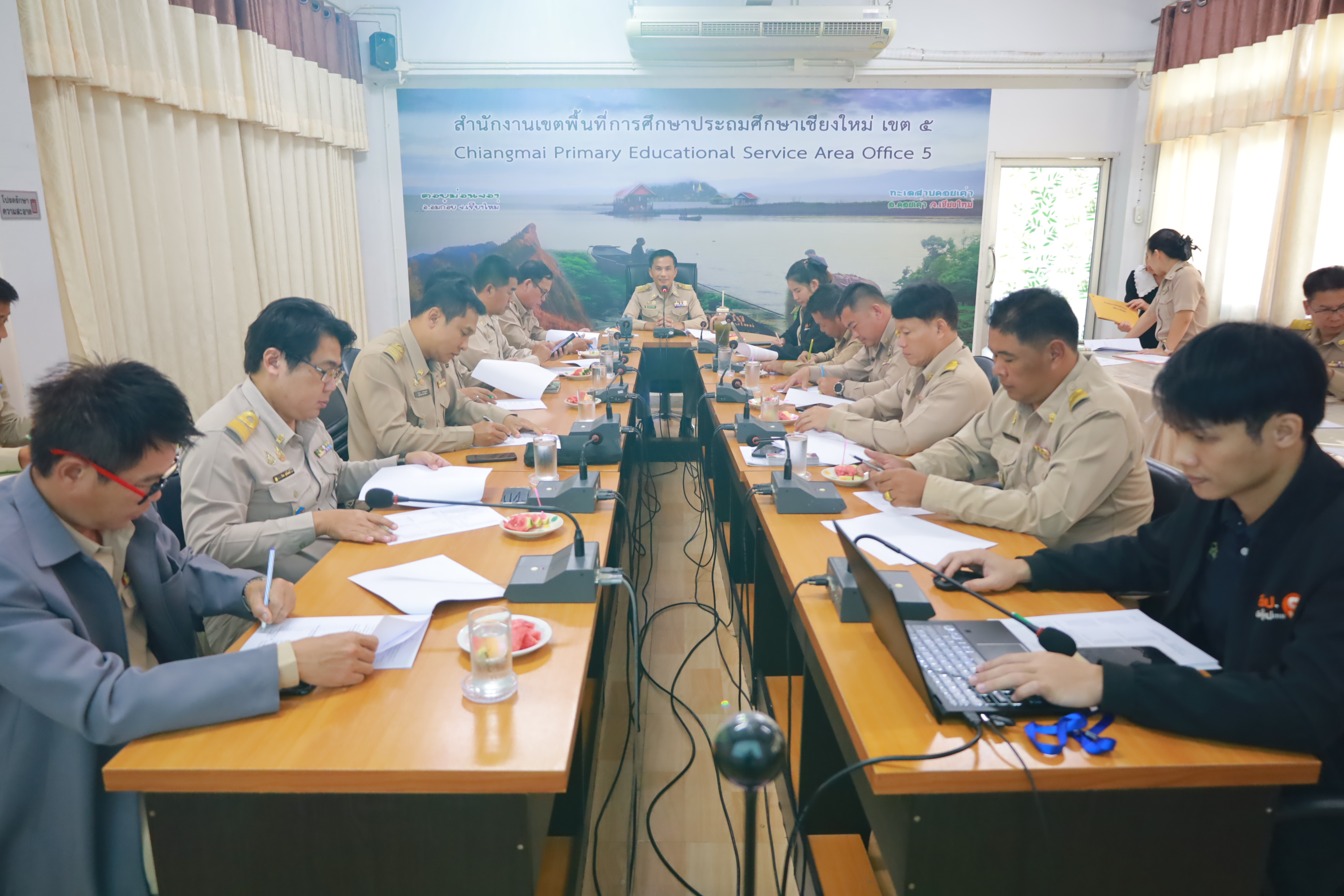 วันที่ 15 ธันวาคม 2568 นายประจักษ์ สระแก้ว ผู้อำนวยการสำนักงานเขตพื้นที่การศึกษาประถมศึกษาเชียงใหม่ เขต 5 มอบหมายให้ นายพงศ์ธร จิตรแม้น รองผู้อำนวยการสำนักงานเขตพื้นที่การศึกษาประถมศึกษาเชียงใหม่ เขต 5 พร้อมด้วย นายนพดล สุริยะสาร ผู้อำนวยการโรงเรียนบ้านโปง นายกสมาคมครูและบุคลากรทางการศึกษาอำเภอดอยเต่า นายประสงค์ พยุงกรพินธุ์ ผู้อำนวยการโรงเรียนบ้านตุงลอย นายกสมาคมครูและบุคลากรทางการศึกษาอำเภออมก๋อย นางสาวกีรติ การะบูรณ์ นักวิชาการศึกษาชำนาญการ ปฏิบัติหน้าที่ผู้อำนวยการกลุ่มส่งเสริมการจัดการศึกษา ประธานเครือข่ายพัฒนาคุณภาพการศึกษาทุกเครือข่าย ผู้อำนวยการสถานศึกษา และบุคลากรที่เกี่ยวข้อง ร่วมประชุมคณะกรรมการการจัดแข่งขันกีฬานักเรียน "CMA 5 Sport 2026" ภายใต้โครงการแข่งขันกีฬานักเรียน CMA 5 Sport 2026 ปีงบประมาณ พ.ศ.2569 สำนักงานเขตพื้นที่การศึกษาประถมศึกษาเชียงใหม่ เขต 5 เพื่อร่วมพิจารณากำหนดรูปแบบกีฬา ปฏิทินการดำเนินงาน รวมทั้งสถานที่การจัดการแข่งขัน งบประมาณ และรางวัลต่าง ๆ ณ ห้องประชุมม่อนจอง สพป.เชียงใหม่ เขต 5