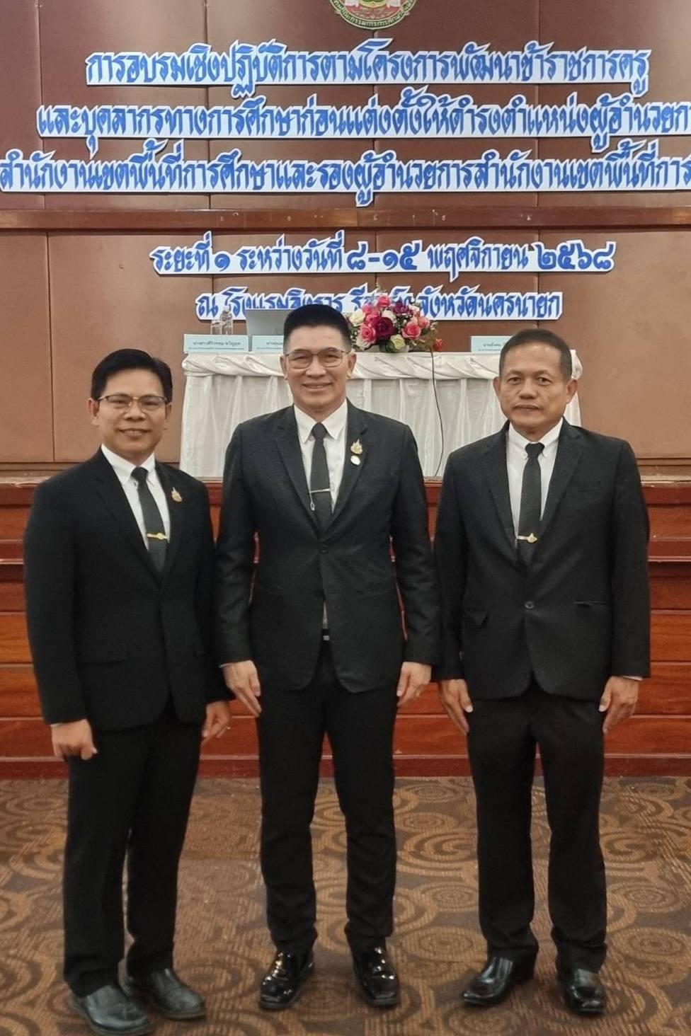วันที่ 8 พฤศจิกายน 2568 นายสายัญ โพธิ์สุวรรณ์ รองผู้อำนวยการสำนักงานเขตพื้นที่การศึกษาประถมศึกษาเชียงใหม่ เขต 5 และนายสงกรานต์ จันทร์ต๊ะ ผู้อำนวยการโรงเรียนบ้านเตียนอาง เข้ารับการอบรมเชิงปฏิบัติการตามโครงการพัฒนาข้าราชการครู และบุคลากรทางการศึกษา ก่อนแต่งตั้งให้ดำรงตำแหน่ง ผู้อำนวยการสำนักงานเขตพื้นที่การศึกษา และรองผู้อำนวยการสำนักงานเขตพื้นที่การศึกษา ระยะที่ 1 ระหว่างวันที่ 8-15 พฤศจิกายน 2568 ณ โรงแรมอิงธารรีสอร์ท จังหวัดนครนายก