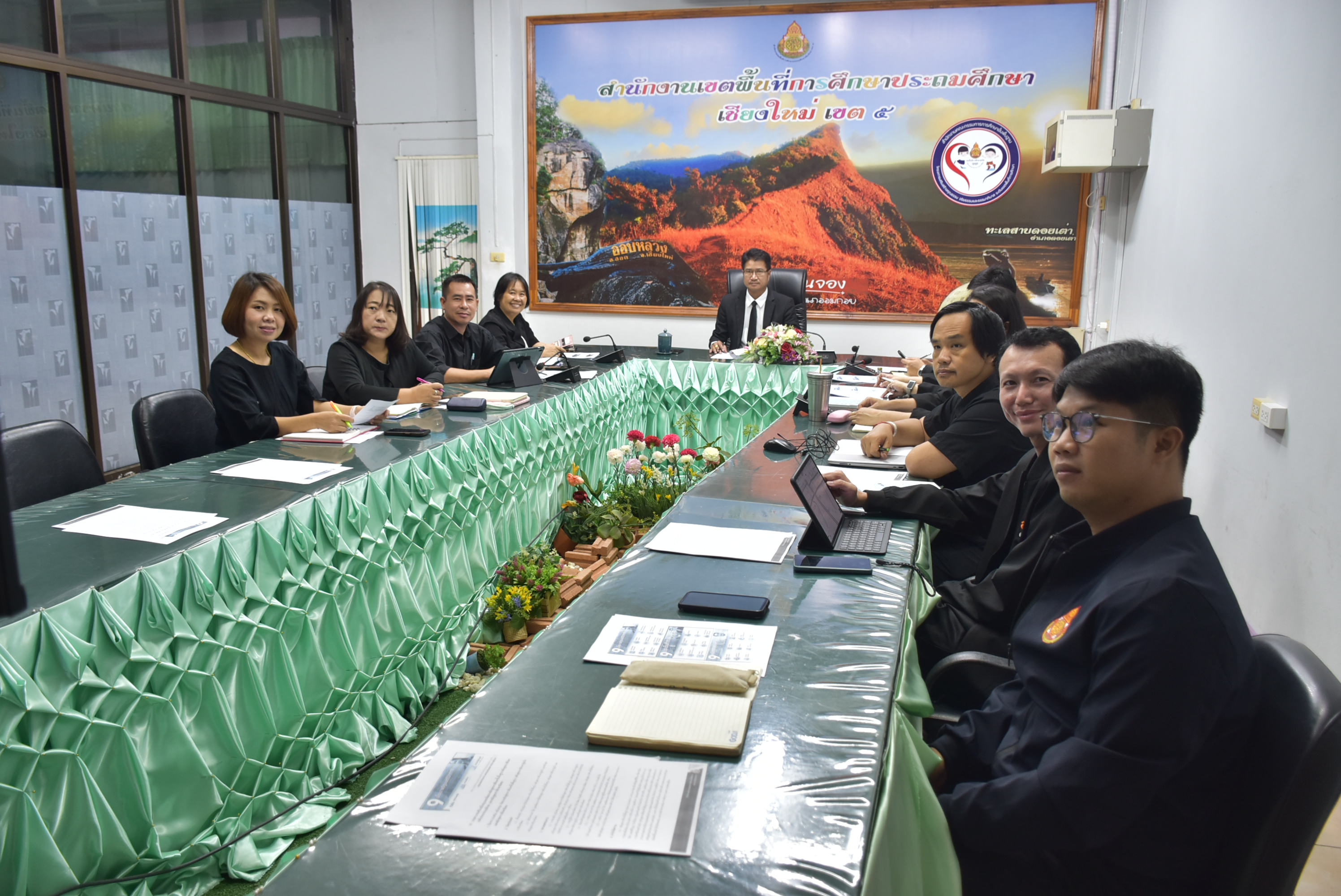 วันที่ 30 ตุลาคม 2568 นายประจักษ์ สระแก้ว ผู้อำนวยการสำนักงานเขตพื้นที่การศึกษาประถมศึกษาเชียงใหม่ เขต 5 มอบหมายให้ นายศักดิ์ชาย ไร่ขาม รองผู้อำนวยการสำนักงานเขตพื้นที่การศึกษาประถมศึกษาเชียงใหม่ เขต 5 พร้อมด้วย ศึกษานิเทศก์ ในสังกัดกลุ่มนิเทศติดตาม และประเมินผลกาจัดการศึกษา นำโดย ดร.วชิราพร สุวรรณศรวล ผู้อำนวยการกลุ่มนิเทศติดตาม และประเมินผลกาจัดการศึกษา ร่วมการประชุมออนไลน์ Kick Off Meeting : มิติใหม่การนิเทศการศึกษาสู่การพัฒนาคุณภาพผู้เรียนอย่างยั่งยืนตามนโยบาย "เรียนดี มีคุณธรรม" ปีงบประมาณ พ.ศ.2569 โดยมี ดร.พิเชฐ โพธิ์ภักดี เลขาธิการคณะกรรมการการศึกษาขั้นพื้นฐาน เป็นผู้เปิดการประชุมออนไลน์ พร้อมทั้งมอบนโยบายและจุดเน้นของสำนักงานคณะกรรมการการศึกษาขั้นพื้นฐาน ร่วมประชุมออนไลน์ ผ่านระบบ Video Conference ณ ห้องประชุมสวนสน สพป.เชียงใหม่ เขต 5