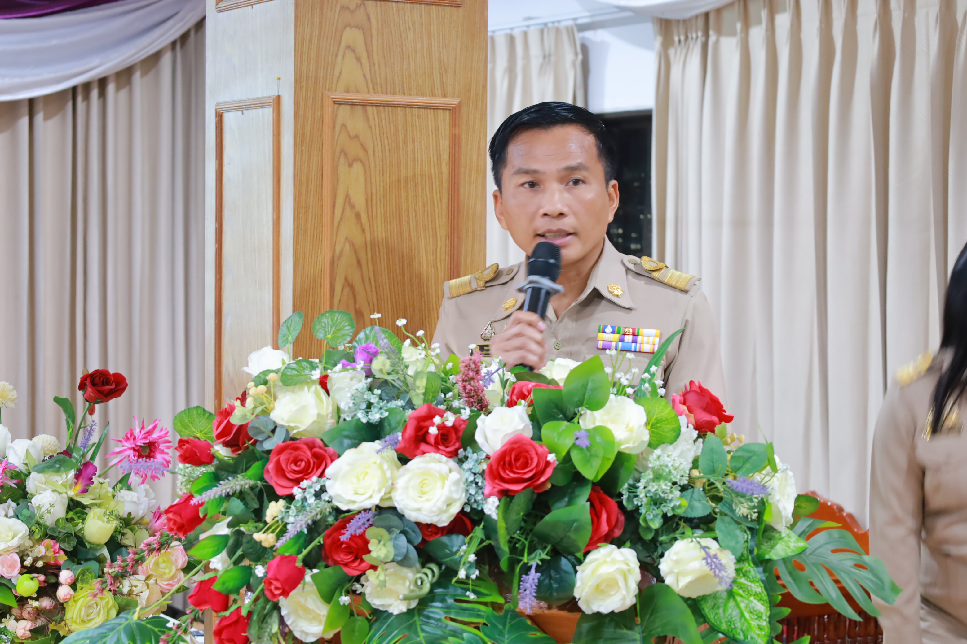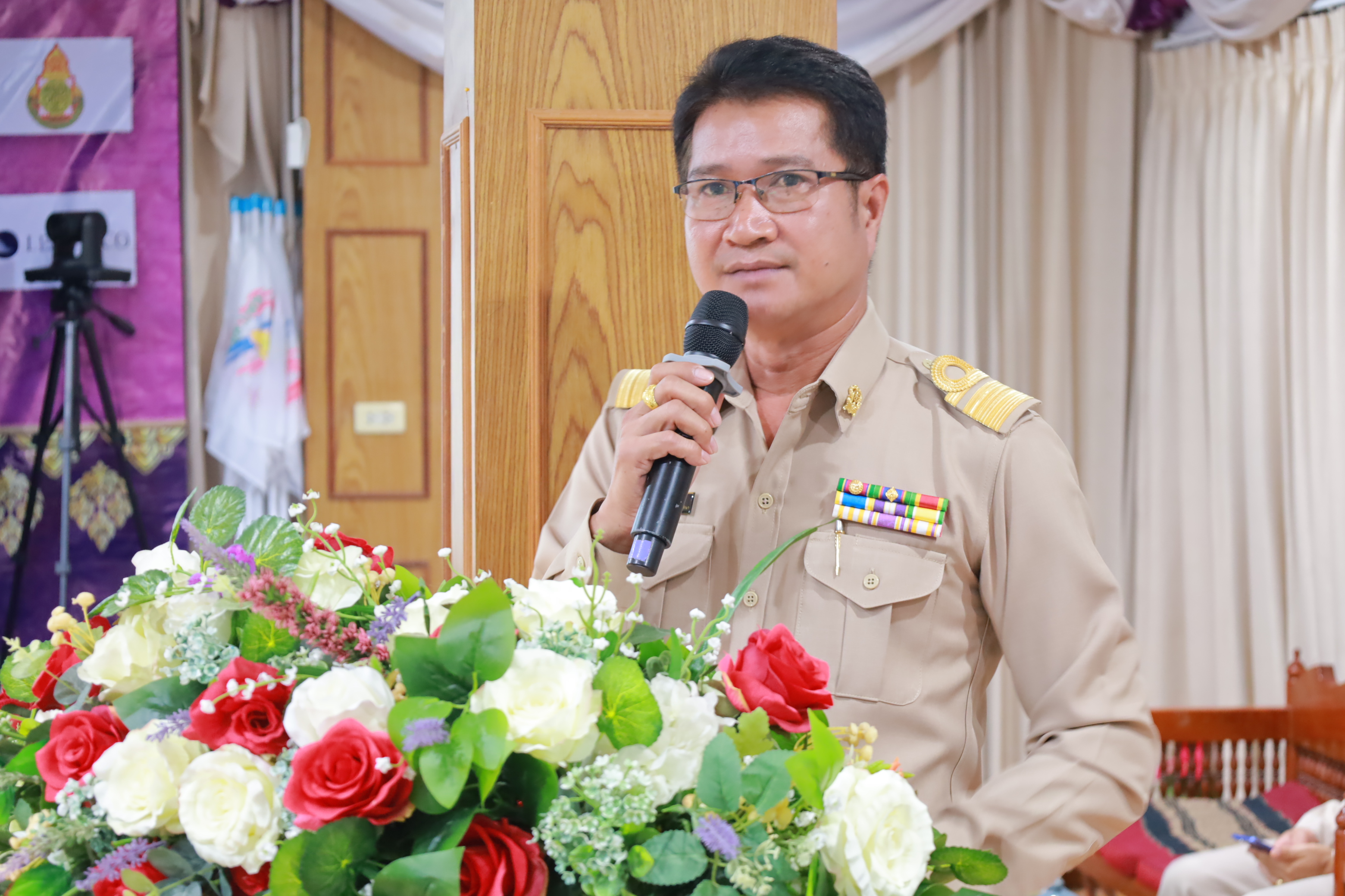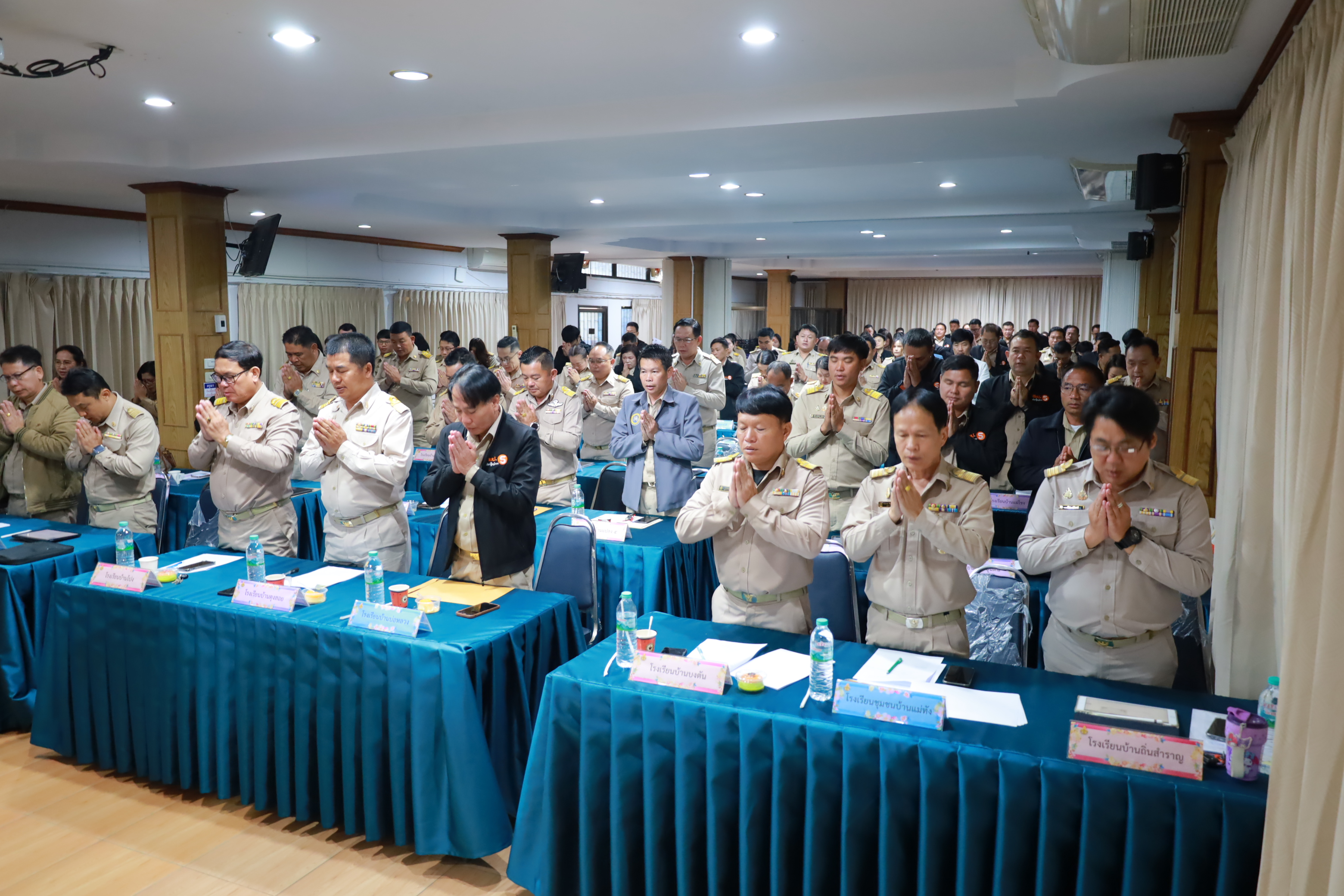 วันที่ 15 ธันวาคม 2568 เวลา 09.00 น. นายประจักษ์ สระแก้ว ผู้อำนวยการสำนักงานเขตพื้นที่การศึกษาประถมศึกษาเชียงใหม่ เขต 5 เป็นประธานในการประชุมผู้บริหารสถานศึกษาในสังกัด ครั้งที่ 5 ประจำปีพุทธศักราช 2568 พร้อมด้วย นายสายัญ โพธิ์สุวรรณ์ นายศักดิ์ชาย ไร่ขาม และนายพงศ์ธร จิตรแม้น รองผู้อำนวยการสำนักงานเขตพื้นที่การศึกษาประถมศึกษาเชียงใหม่ เขต 5 ผู้อำนวยการกลุ่ม/หน่วย และผู้อำนวยการสถานศึกษาทุกโรงในสังกัด ทั้งนี้เพื่อแจ้งข้อราชการสำคัญ แนวทางการขับเคลื่อนนโยบายกระทรวงศึกษาธิการ นโยบายและจุดเน้นสำนักงานคณะกรรมการการศึกษาขั้นพื้นฐาน (สพฐ.) ประจำปีงบประมาณ 2569-2570 และนโยบายเร่งด่วน (Quick Win) ประจำปีงบประมาณ 2569 อีกทั้งเน้นย้ำนโยบายของสำนักงานเขตพื้นที่การศึกษาประถมศึกษาเชียงใหม่ เขต 5 ประจำปีงบประมาณ พ.ศ. 2569 อันประกอบด้วย 1. ปลูกฝังความรักในสถาบันหลักของชาติ น้อมนำพระบรมราโชบายด้านการศึกษา และหลักปรัชญาของเศรษฐกิจพอเพียงสู่การปฏิบัติ 2. ส่งเสริมนิสัยรักการอ่าน พัฒนาการอ่านออก (อ่านออกยกชั้น) เขียนได้และคิดเลขเป็น สู่การยกระดับผลสัมฤทธิ์ทางการเรียน O-NET/NT/RT และผลสัมฤทธิ์รายชั้นเรียน 3. พัฒนาหลักสูตรที่เน้นสมรรถนะผู้เรียน ส่งเสริมการจัดกระบวนการเรียนรู้เชิงรุก (Active Learning) การจัดการเรียนรู้ภูมิศสาตร์ ประวัติศาสตร์ หน้าที่พลเมือง ศีลธรรม และประชาธิปไตย รวมถึงการส่งเสริมพหุปัญญา 4. สร้างความปลอดภัยให้แก่ผู้เรียน ครูและบุคลากรทางศึกษา ตามนโยบายเรียนดี มีคุณธรรม 5. บริหารงบประมาณอย่างมีประสิทธิภาพและเกิดประโยชน์สูงสุด 6. เพิ่มโอกาสและความเสมอภาคทางการศึกษาให้กับผู้เรียนทุกคนอย่างเหมาะสมตามช่วงวัย 7. ส่งเสริม พัฒนาครูและบุคลากรทางการศึกษา ให้มีทักษะในการสร้างและใช้สื่อเทคโนโลยีดิจิทัล ประยุกต์ใช้ในการจัดการเรียนการสอนให้กับผู้เรียนผ่านฟอร์มการจัดการเรียนรู้ด้วยเทคโนโลยีดิจิทัล 8. พัฒนาการสื่อสารองค์กร การเผยแพร่สื่อประชาสัมพันธ์ โดยใช้เทคโนโลยีที่ทันสมัย 9. ส่งเสริม สนับสนุนสถานศึกษาพัฒนาห้องเรียนเป็นห้องเรียนแห่งความสุข ในการประชุม นายประจักษ์ สระแก้ว ผู้อำนวยการสำนักงานเขตพื้นที่การศึกษาประถมศึกษาเชียงใหม่ เขต 5 พร้อมด้วย นายสายัญ โพธิ์สุวรรณ์ นายศักดิ์ชาย ไร่ขาม และนายพงศ์ธร จิตรแม้น รองผู้อำนวยการสำนักงานเขตพื้นที่การศึกษาประถมศึกษาเชียงใหม่ เขต 5 ผู้อำนวยการกลุ่ม/หน่วย และผู้อำนวยการสถานศึกษาทุกโรงในสังกัด ร่วมสวดมนต์ไหว้พระ และยืนสงบนิ่งเป็นเวลา 93 วินาที เพื่อแสดงความอาลัยแด่สมเด็จพระนางเจ้าสิริกิติ์ พร