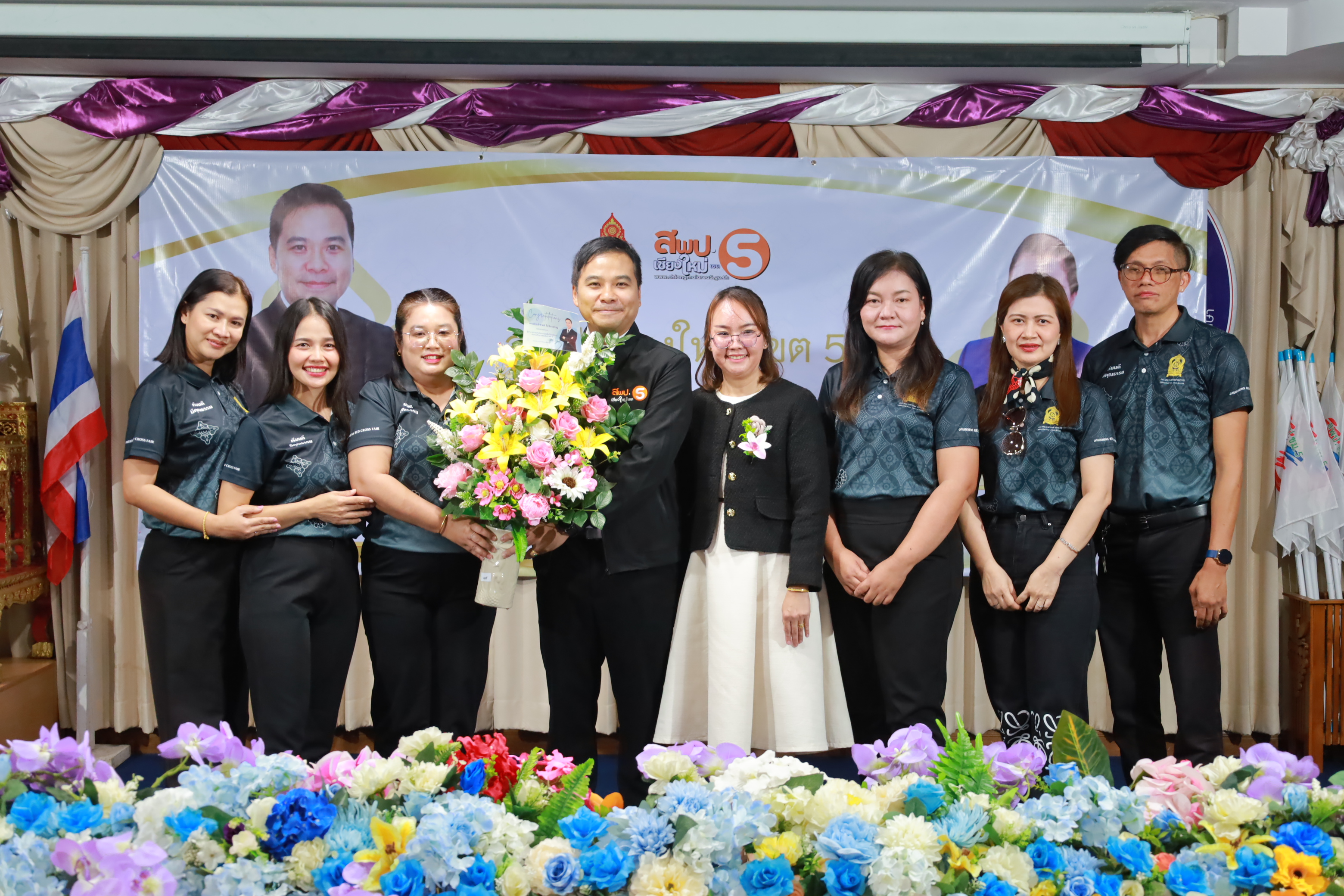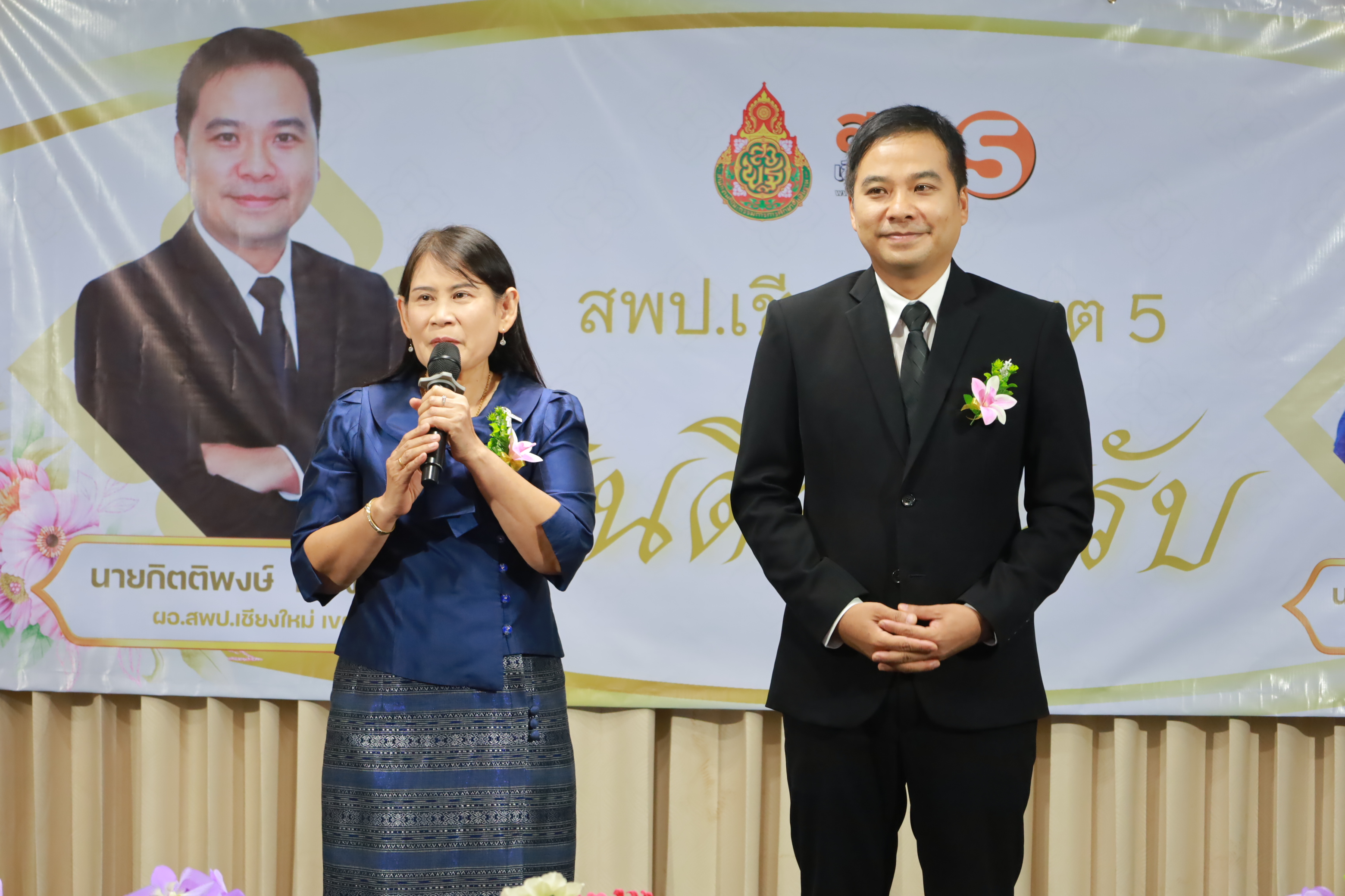 วันที่ 7 มกราคม 2569 สำนักงานเขตพื้นที่การศึกษาประถมศึกษาเชียงใหม่ เขต 5 จัดพิธีต้อนรับ นายกิตติพงษ์ โปร่งเจริญ ผู้อำนวยการสำนักงานเขตพื้นที่การศึกษาประถมศึกษาเชียงใหม่ เขต 5 และนางสาวอรัญญา สารีโพธิ์ รองผู้อำนวยการสำนักงานเขตพื้นที่การศึกษาประถมศึกษาเชียงใหม่ เขต 5 ณ สพป.เชียงใหม่ เขต 5 . มีการฟ้อนรำนำขบวนต้อนรับ โดยนักเรียนจากโรงเรียนบ้านแควมะกอก นำคณะเข้าสู่ห้องประชุม รับชมวีดิทัศน์นำเสนอสำนักงานเขตพื้นที่ ฯ และวีดิทัศน์แนะนำ ผอ.กิตติพงษ์ โปร่งเจริญ ทั้งยังได้รับเกียรติจาก ดร.ผกาภรณ์ พลายสังข์ อดีตผอ.สพป.พิษณุโลก เขต 2 และนายชัยชนะ สระทองทา ผอ.สพป.พิษณุโลก เขต 2 กล่าวแสดงความยินดี พร้อมทั้งมอบช่อดอกไม้ จากนั้นรับชมวีดิทัศน์แนะนำ รองผอ.อรัญญา สารีโพธิ์ ได้รับเกียรติจาก นายบุญถม ปุระพรม ผอ.โรงเรียนโนนคำพิทยาคม กล่าวแสดงความยินดี พร้อมมอบช่อดอกไม้ และได้รับเกียรติจาก นายอวยชัย ศรีตระกูล ประธาน อ.ก.ค.ศ.เขตพื้นที่ ฯ ขึ้นกล่าวให้การต้อนรับ ผอ.กิตติพงษ์ และรองผอ.อรัญญา พร้อมมอบช่อดอกไม้แสดงความยินดี หลังจากนั้นเป็นการมอบช่อดอกไม้แสดงความยินดีแก่ทั้งสองท่าน จากเครือข่ายพัฒนาคุณภาพการศึกษาทั้ง 11 เครือข่าย และมอบของที่ระลึกจากแขกผู้มีเกียรติที่เข้าร่วม พร้อมทั้งถ่ายภาพร่วมแสดงความยินดี